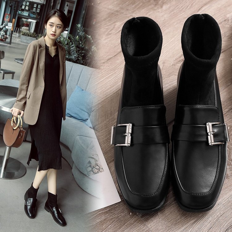 Ready Stock Women Top Heel Fashion Autumn Winter Low Heel Shoes Martin Boot Ankle Boots Knitted Shoes Shopee Malaysia